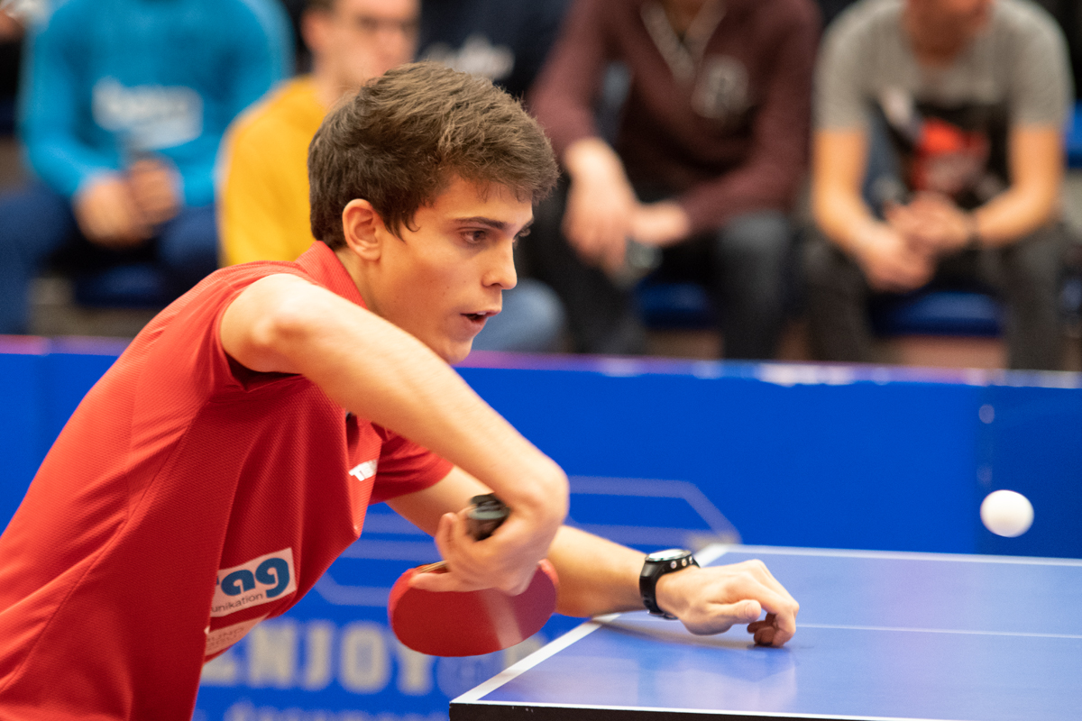 Mit dem Chinesen Xijun Zhou, dem Belgier Yannick Vostes und dem Holländer Laurens Tromer schienen die Gastgeber zu gut besetzt. Zuerst musste der 16-jährige Mauro Schärrer gegen Zhou, der eigens für die Europacupspiele eingeflogen wurde, in die Spielbox. Der junge Schweizer spielte sehr aggressiv und machte seine Sache gegen den noch sichtlich nervös wirkenden Chinesen sehr gut. Beim Stand von 1:2 und 8:4-Führung bestand die Chance auf einen Entscheidungssatz. „Mauro spielte insgesamt auf sehr hohem Niveau. Er war extrem locker. In der Endphase des 4. Satzes war er dann vor allem im Rückschlag etwas zu passiv und dann schlägt es eben ein. Daraus kann er lernen“, so Trainer Pelz.