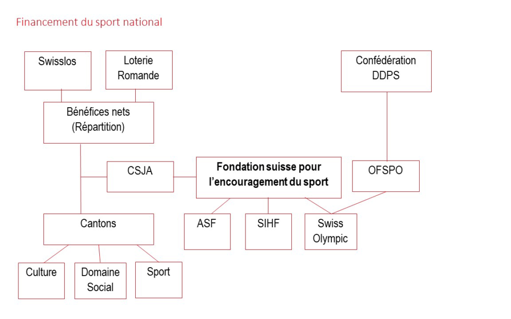 Avec la Conférence spécialisée des membres de gouvernements concernés par les jeux d’argent (CSJA), les cantons disposent d’un organe qui représente leurs intérêts communs. À l’avenir, la CSJA décidera du montant destiné au sport national et des priorités pour son utilisation. Afin que l’organe de répartition des fonds dispose d’une certaine indépendance par rapport à la politique, une fondation indépendante de droit public, la «Fondation suisse pour l’encouragement du sport (FSES)», a été créée pour la répartition des fonds. De plus amples informations sont disponibles sous www.fses.ch
