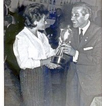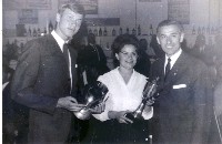| Präsident Hugo Urchetti übergibt den Siegern Eva Kocziàn (Ungarn) und Kjell Johansson (Schweden) den ersten Preis. | |