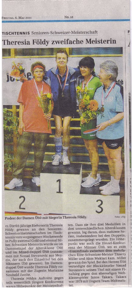 Artikel über Teri Földy (zweifache Schweizermeisterin)